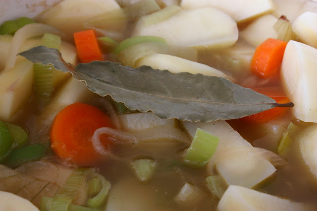 Add a bay leaf and a tablespoon of oregano along with some salt and pepper - more can be added if you want - all about personal taste. Also remember this is a massive batch of soup so you will need to add a lot of salt/pepper/herbs - around 6 servings.